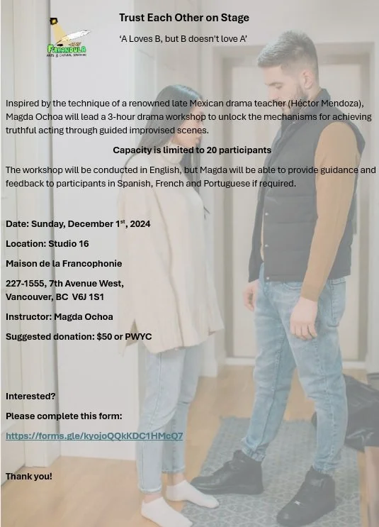 Ce programme de formation en prise de parole en public est spécifiquement conçu pour des artistes provenant de divers domaines artistiques. Il vise à développer les compétences nécessaires pour communiquer avec confiance, clarté et impact lors de présentations artistiques. L'atelier comprend des séances collectives et individuelles axées sur l'interprétation de textes, l'utilisation de l'espace scénique, la kinésique, la projection de la voix, la gestuelle, ainsi que d'autres aspects essentiels de la prise de parole en public.